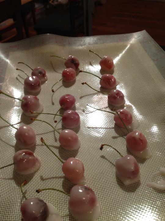 Waiting to be covered in chocolate, after their dip in invertase laced fondant.