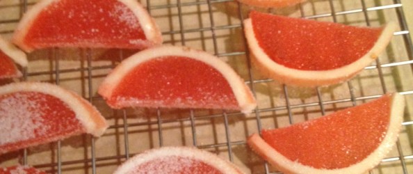 The grapefruit jelly slices turned out better once they sat overnight. The skin stopped wanting to slide off (always a good thing…).