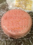 - Un-mold the cake onto a cake board (AKA round piece of cardboard)
