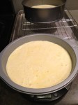 Prep 2 8-inch springform pans, and 1 regular round pan of about the same size. (Spray, line with parchment, spray again)