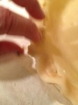 - Add in more warm milk mixture, till about half has been mixed in, and make sure to get to goopy stuff off the bottom of the pan.
