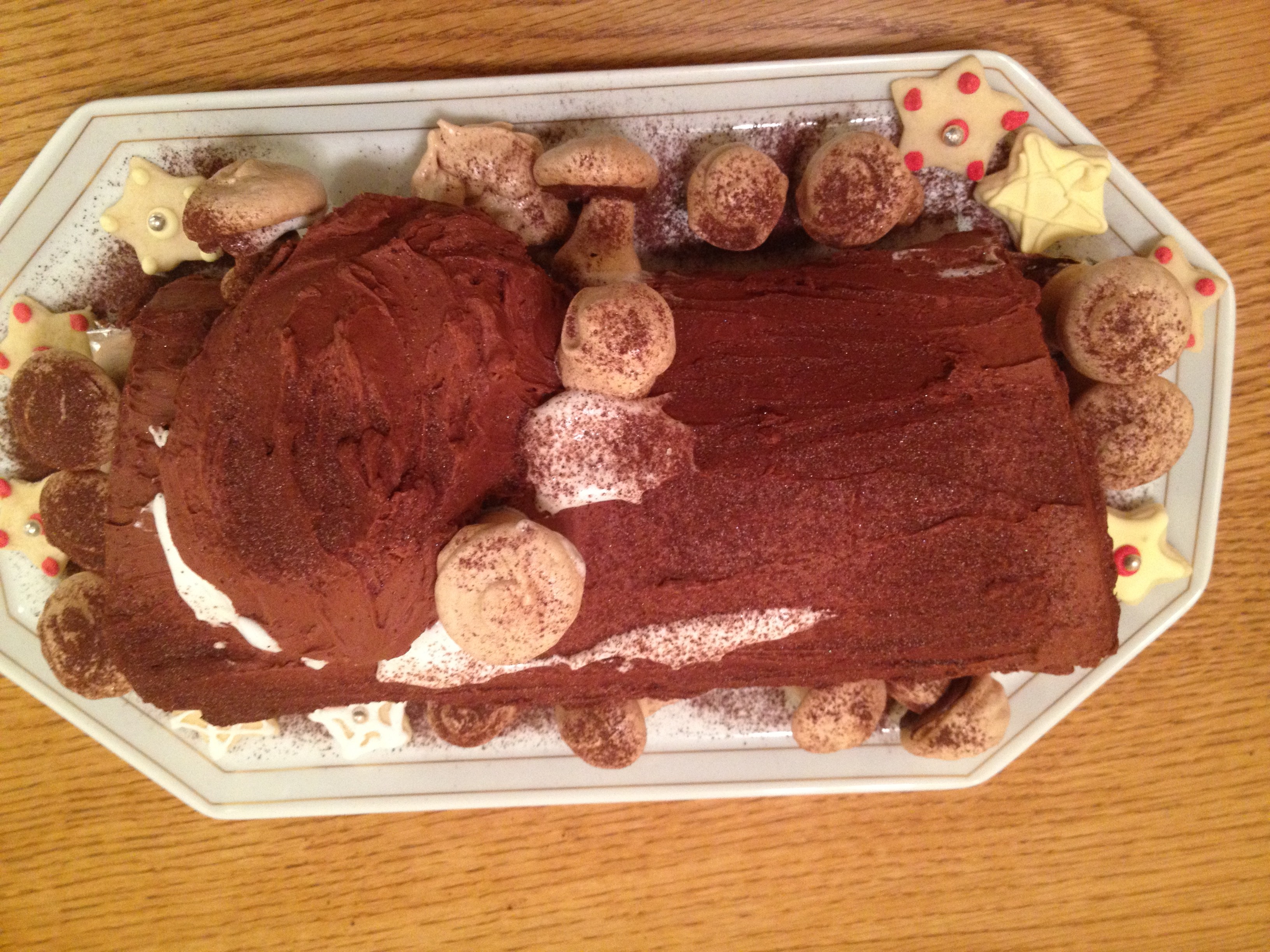 - Finished Buche de Noel – Before Mushroom decorations
