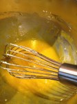 - Mix in the cooled melted butter into the eggs.