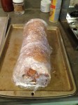 - Wrap with plastic wrap till you’re ready to unroll it and fill it.