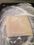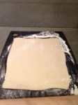 - Roll out the puff pastry, too about a quarter of an inch thick.