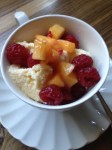 - Serve with some seasonal fruit – I did peaches and raspberries, with a little sugar and some bourbon.